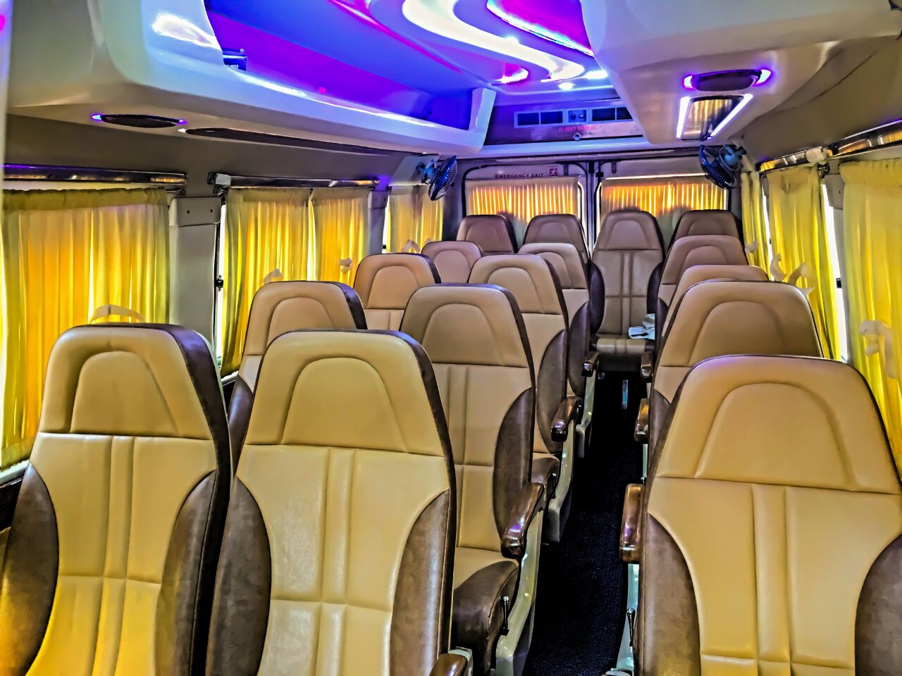 Per KM : Rs. 36Parking : ExtraSeats : 16-Seater